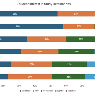 Compared to the Spring 2024 Student Pulse Survey, those “very interested” in Canada as a study destination went up two percentage points, while moderate interest went from 8% in the Spring 2024 survey to 12% this year—a 4% jump.